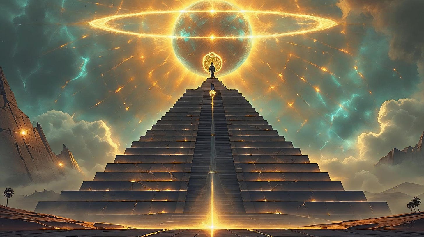 Above them all, atop the stepped Pyramid of the High Father, the Hierophant, Tietra Saintinas, stood in a halo of light. With an outstretched hand, he performed a grand ritual, a terrifying show of power. His figure shimmered, and from his hands, a golden stream of energy poured into the air. It guided the collective prayers of the faithful, aiding them upward into the heart of the Second Sun. Even unwillingly, Ianc’s thread of desire flew up. Its color was like oil on water, with dust motes danced around it as he reached out to grab it back in vain.